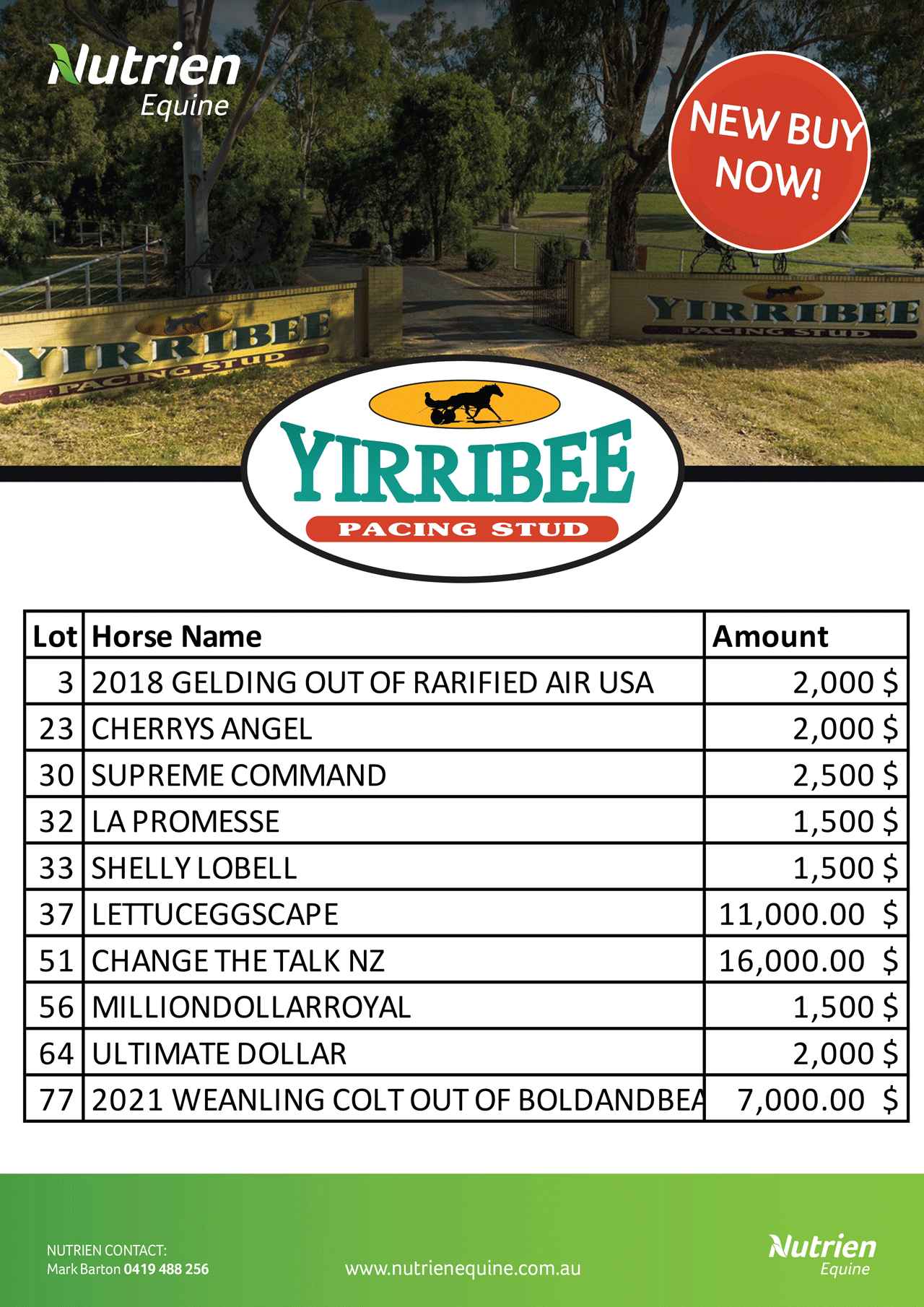 We are excited to present the last chance at purchasing from the Yirribee Dispersal Sale.